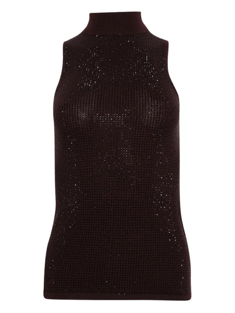 brown cashmere blend rhinestone embellishment high neck sleeveless