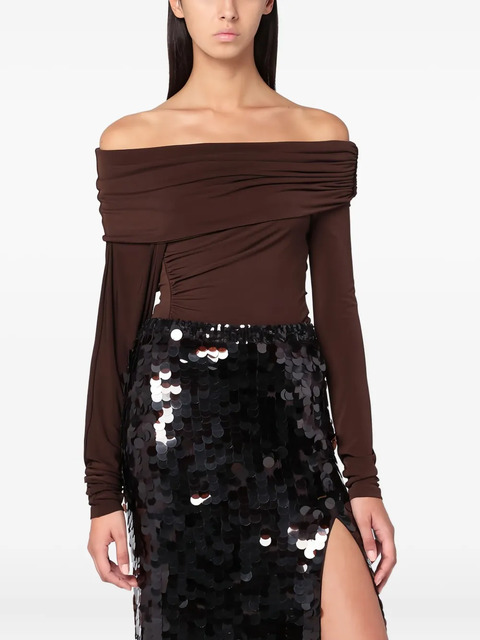 dark brown off-shoulder style long sleeves gathered detailing off-shoulder