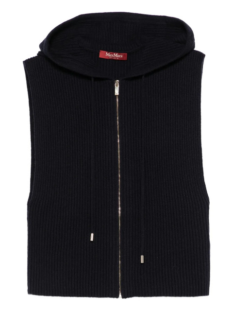 midnight blue ribbed knit classic hood zip fastening sleeveless metal hardware