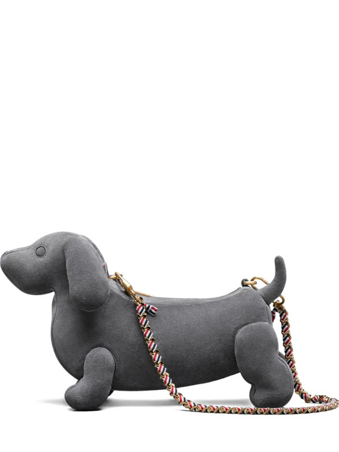 medium grey dachshund shape chain-link shoulder strap top zip fastening 3D details