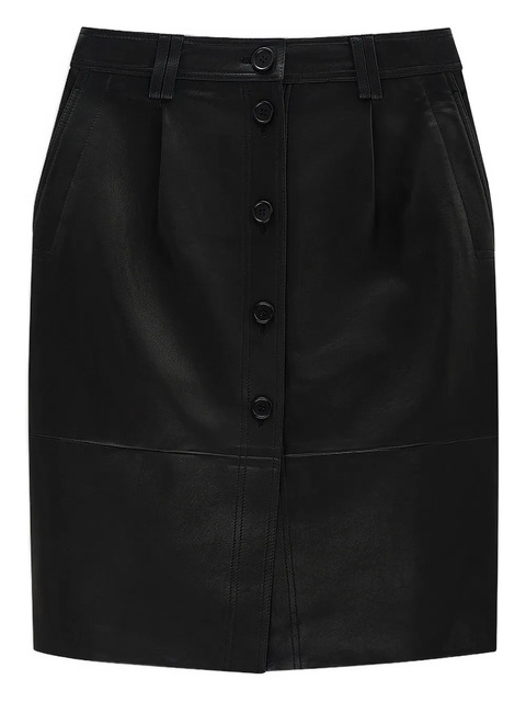 black lambskin leather button fastening front pockets straight hemline