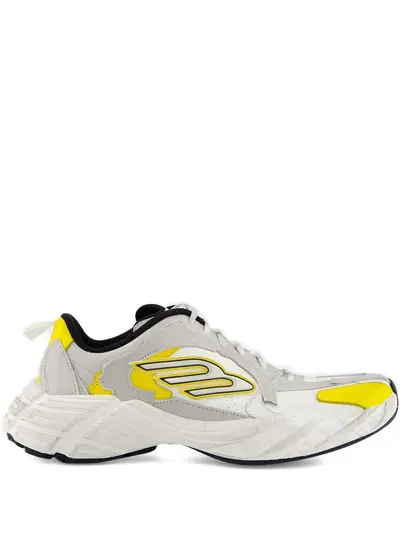 light grey leather upper yellow accents chunky sole logo detail lace-up fastening
