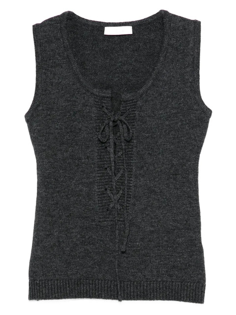 charcoal grey lace-up detailing sleeveless ribbed hem round neck