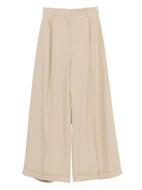 light beige pleat detailing turn-up ankles wide leg high-waisted belt loops