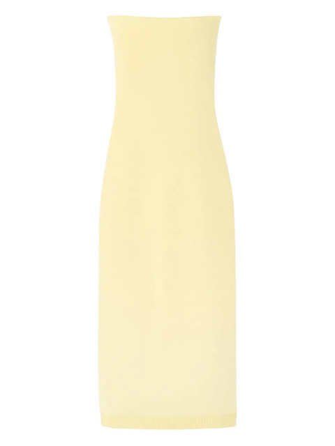 pale yellow strapless button detail straight hem