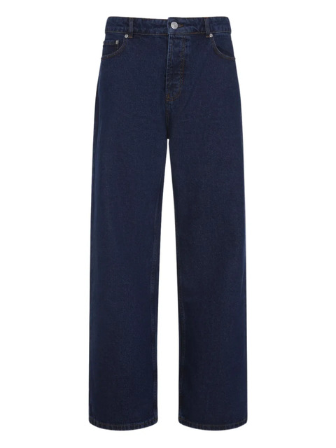 blue cotton belt loops five pockets rear logo patch tonal stitching