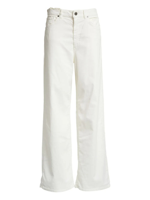 white corduroy texture belt loops five pockets top button fastening zip fly