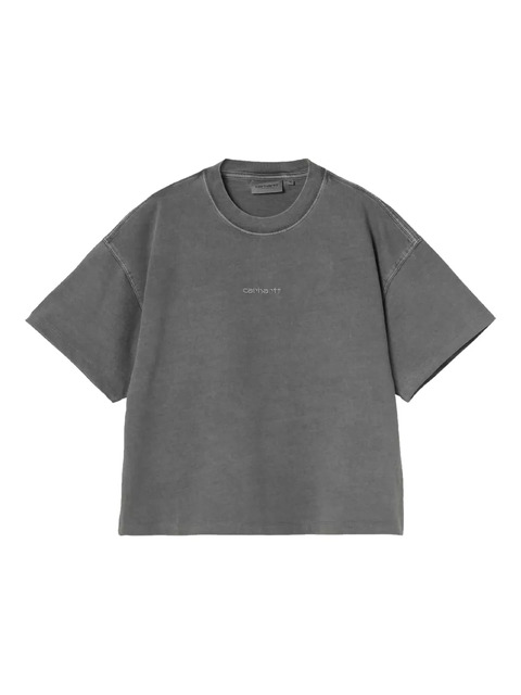 graphite grey short sleeves round neck embroidered logo straight hem organic cotton