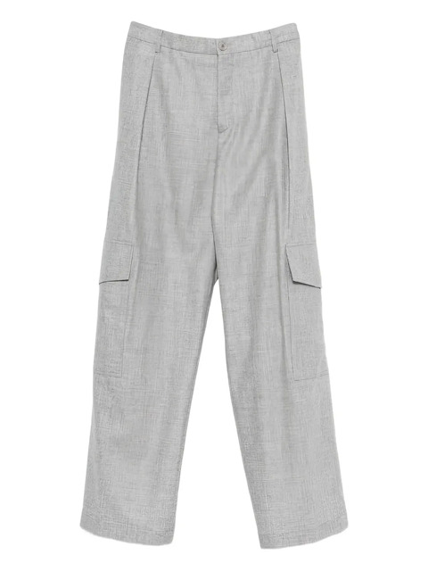 grey side cargo pockets pleated front belt loops button fastening rear welt pocket