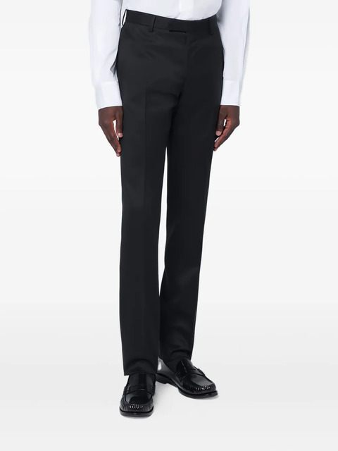black wool single-breasted notched lapels button fastening flap pockets long sleeves