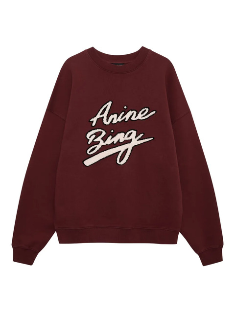 cabernet red logo detail crew neck long sleeves ribbed cuffs and hem