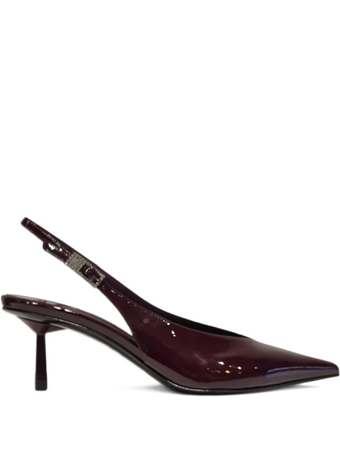dark red pointed toe stiletto heel slingback strap embellishment on the strap