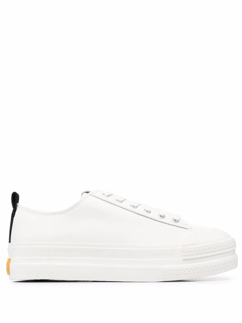 white/black/yellow calf leather colour-block design round toe front lace-up fastening logo patch at the tongue branded insole chunky rubber sole