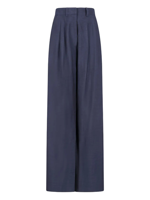 dark blue pleat detail belt loops concealed fly fastening rear welt pockets