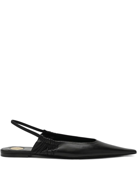black pointed toe ruched detail slingback strap gold-tone logo detail flat sole