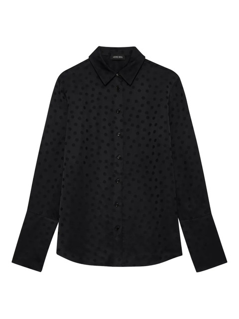 black jacquard front button fastening long sleeves buttoned cuffs pointed collar