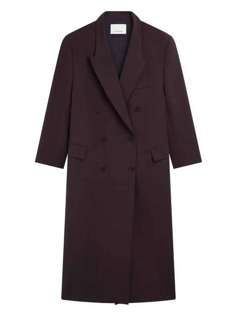 dark plum purple double-breasted button fastening peak lapels flap pockets long sleeves