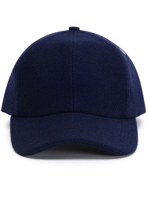 navy blue virgin wool blend embroidered logo to the rear metal eyelet detailing curved peak six-panel construction adjustable strap to the rear slip-on style