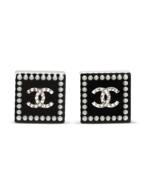 2015 silver-tone interlocking CC logo square shape stud fastening These earrings come as a pair.