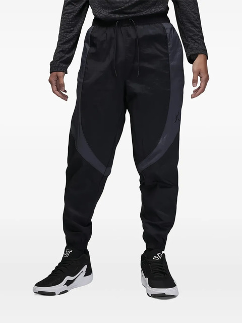 black elasticated drawstring waistband two side slit pockets elasticated ankles