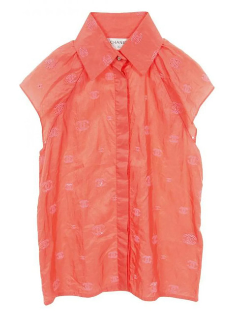 1986-1988 coral pink silk button fastening short sleeves logo embroidered