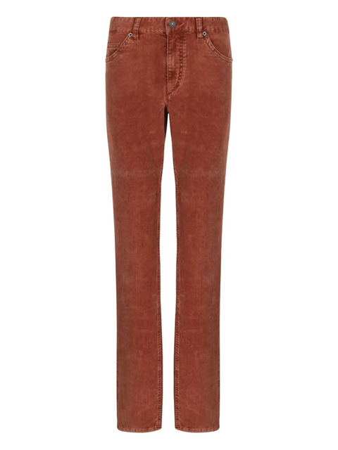 brown rust corduroy texture belt loops five pockets rear logo patch