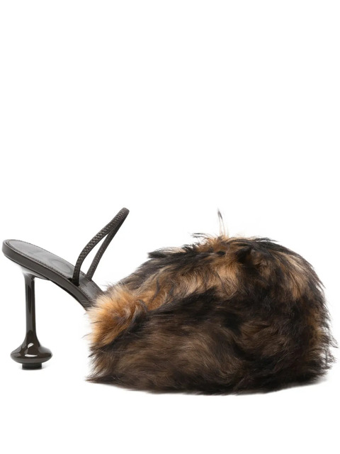 brown braided strap fur detail stiletto heel round toe branded insole