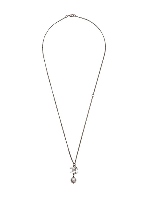 2010 gunmetal silver interlocking CC logo faux-pearl detail lobster clasp fastening