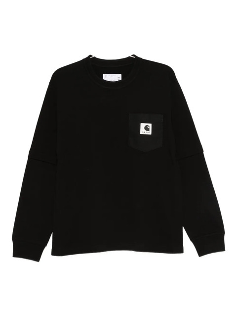 black chest pocket logo patch long sleeves crew neck