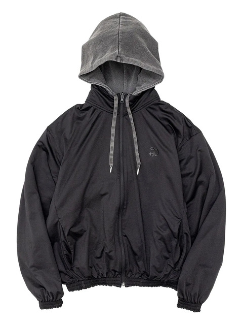 black drawstring hood zip fastening side pouch pockets logo detail long sleeves elasticated trim