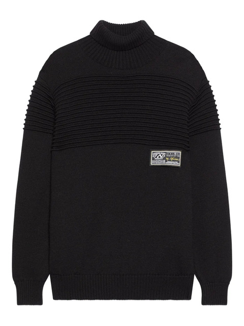 black ribbed design roll neck long sleeves logo patch to the front knitted construction