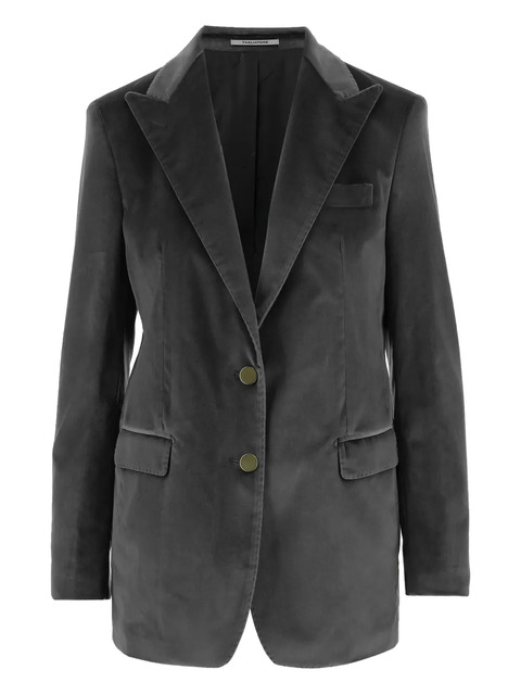grey velvet texture peaked lapels single-breasted closure two front flap pockets