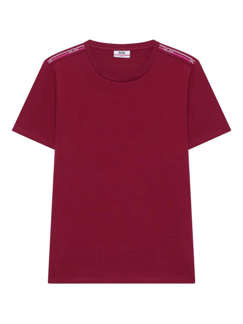 bordeaux round neck logo tape at shoulders short sleeves straight hem