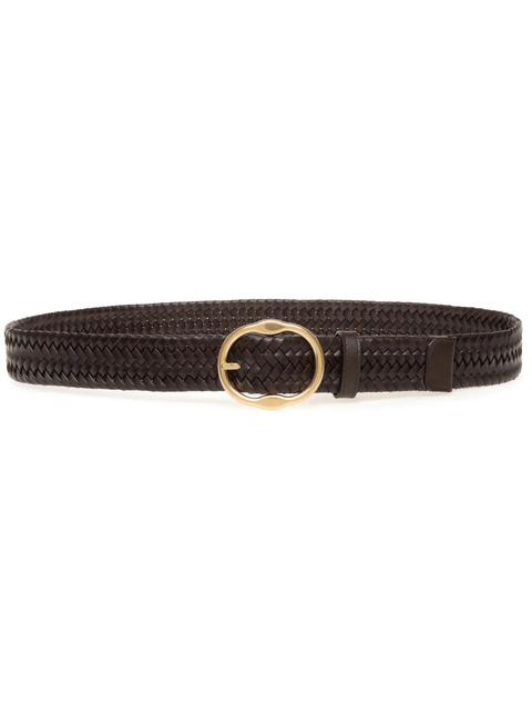 coffee brown leather woven design buckle fastening belt loop adjustable fit