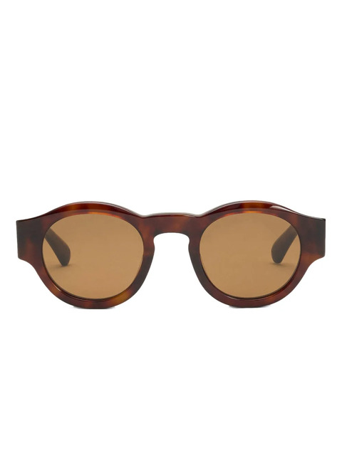 brown round-frame nose pads curved tips sculpted arms yellow tinted lenses