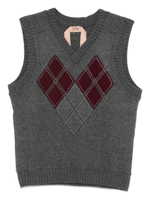 No. 21 Nº21 stud-embellished argyle-knit vest - 32013772 (LPN367283)