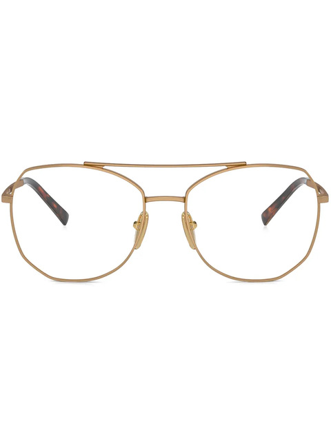gold-tone metal pilot frame double bridge nose pads logo print at the arm straight arms curved tips All glasses from FARFETCH are sold as non-prescription frames.