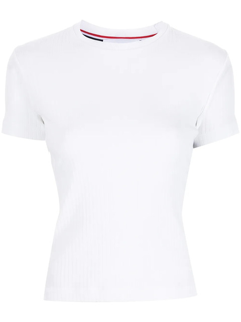 white cotton signature 4-Bar stripe round neck short sleeves straight hem