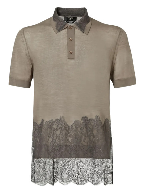 FENDI lace-panel polo shirt - 31750068 (LPN367758)