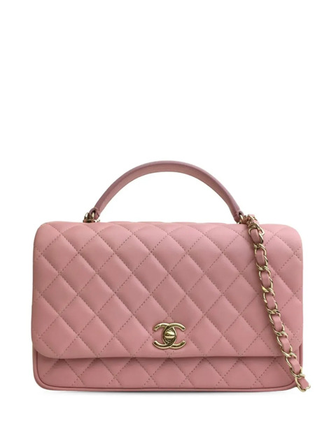 quilted lambskin leather body flat leather top handle leather-woven chain link strap front flap with CC turn-lock closure three interior compartments interior zip pocket pink Inclusions: box, dust bag, authenticity card. Condition: EXCELLENT. This previously owned item is in near-perfect condition with no signs of damage or use. Due to the exclusivity of this item and its limited availability, processing and delivery might take longer than usual. Please refer to the photos on this product page for a detailed view of the item, including any damages declared.