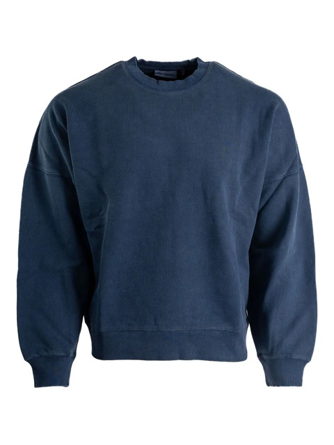 dark blue rear logo round neck long sleeves ribbed hem and cuffs