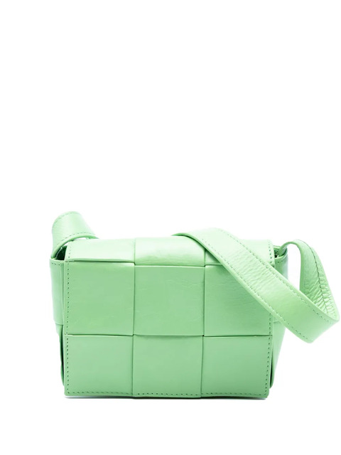 woven nappa leather body adjustable flat leather strap front flap with magnetic snap button closure interior slip pocket green Serial Number: P01140578A This item has no inclusions. Condition: EXCELLENT. This previously owned item is in near-perfect condition with no signs of damage or use. Please refer to the photos on this product page for a detailed view of the item, including any damages declared.