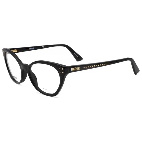Moschino Eyeglasses. Series number: MOS582. Color code: 0807. Shape: Cat Eye. Lens Width: 51 mm. Lens Bridge: 19 mm. Arm Length: 140 mm. Frame Material: Plastic. Frame Color: Black. Lenses Type: Demo. Rim Style: Full-Rim. UPC/EAN code: 716736343730. Moschino Demo Cat Eye Ladies Eyeglasses MOS582 0807 51.<br/><br/>Manufacturer's Packaging Included. Packaging Size And Color May Vary.