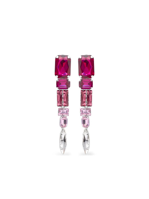 pink ombré crystal embellishment drop design square crystals rectangular crystals metal construction These earrings come as a pair.