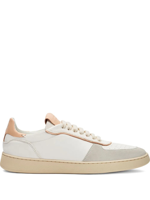 white suede panels leather panels perforated toe box lace-up fastening rubber sole