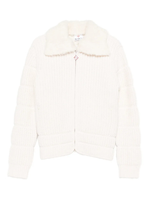 white wool padded design fur collar zip fastening ribbed knit