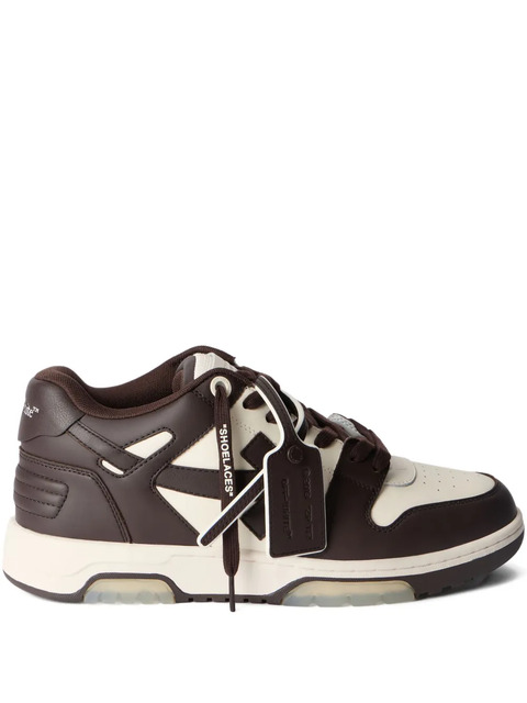 brown and off-white leather upper lace-up fastening arrow motif flat rubber sole low-top design Due to the dyeing process used, this product must not come into contact with water.
