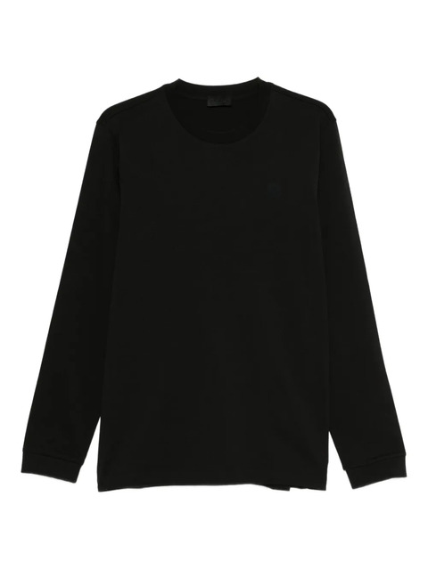 black round neck long sleeves logo patch ribbed cuffs straight hem