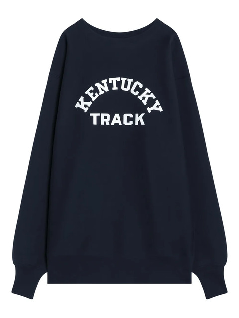 navy blue crew neck long sleeves ribbed cuffs and hem logo print to the front