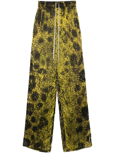 racing green elasticated drawstring waistband two side slit pockets two rear flap pockets abstract pattern print